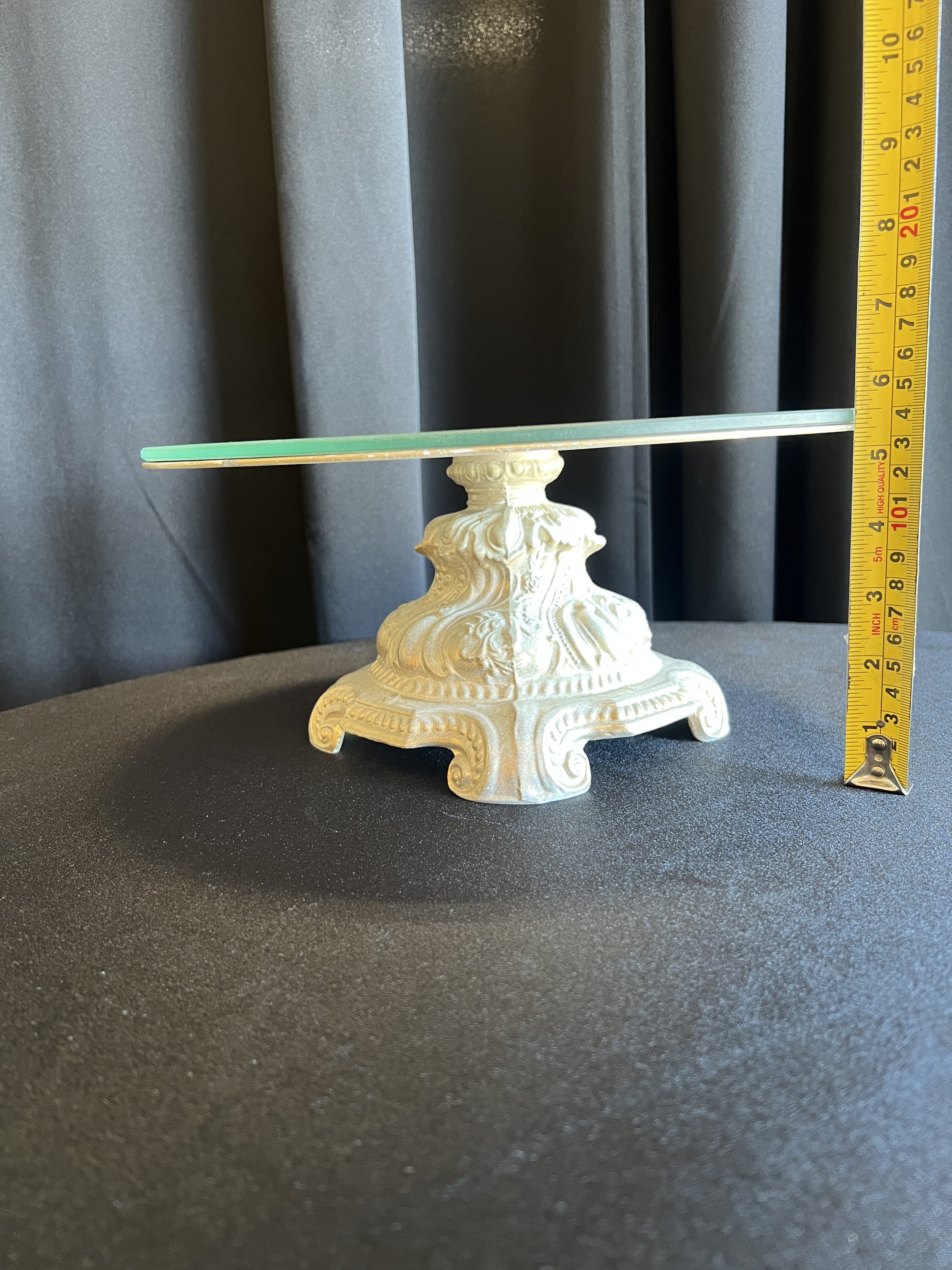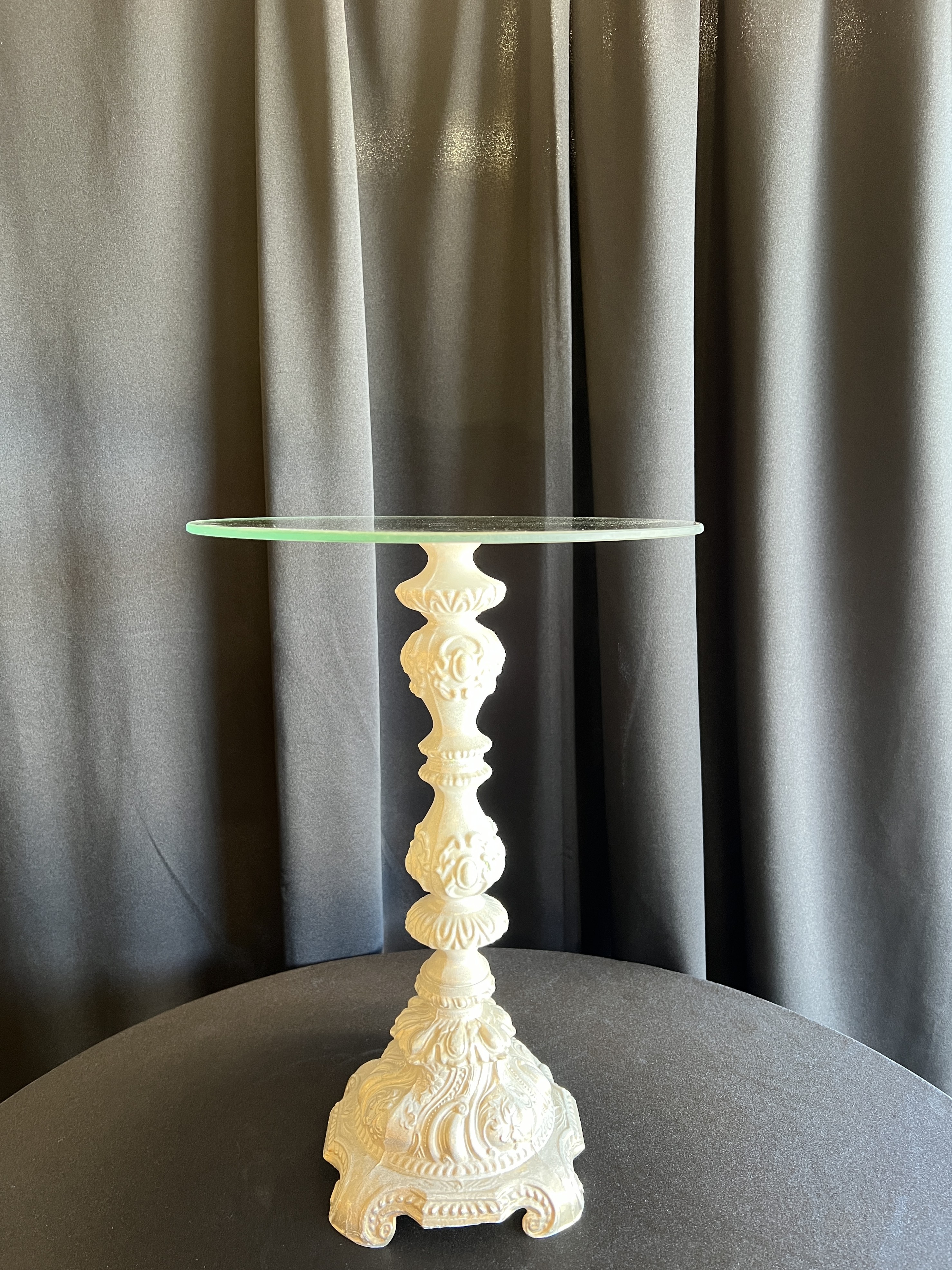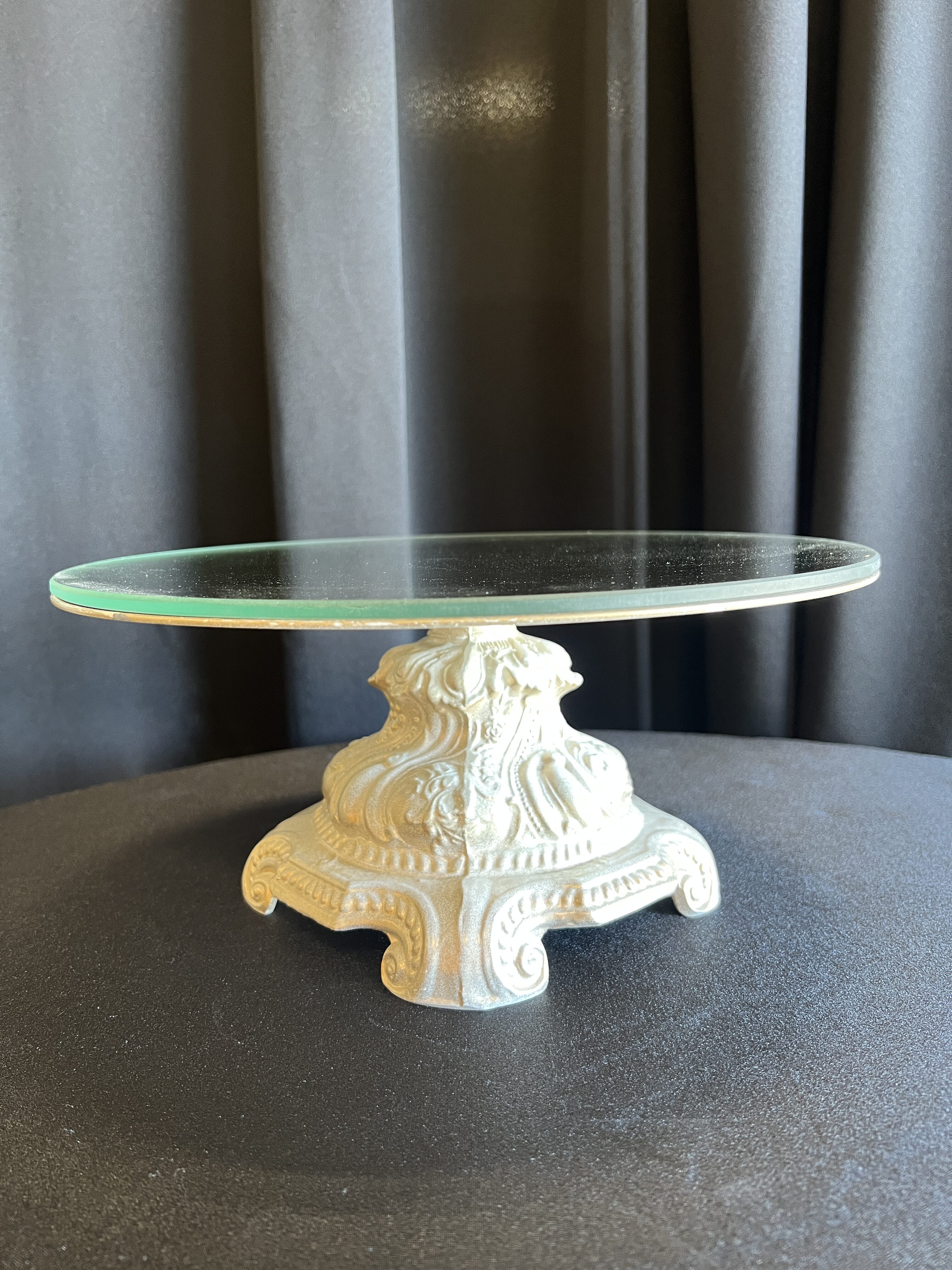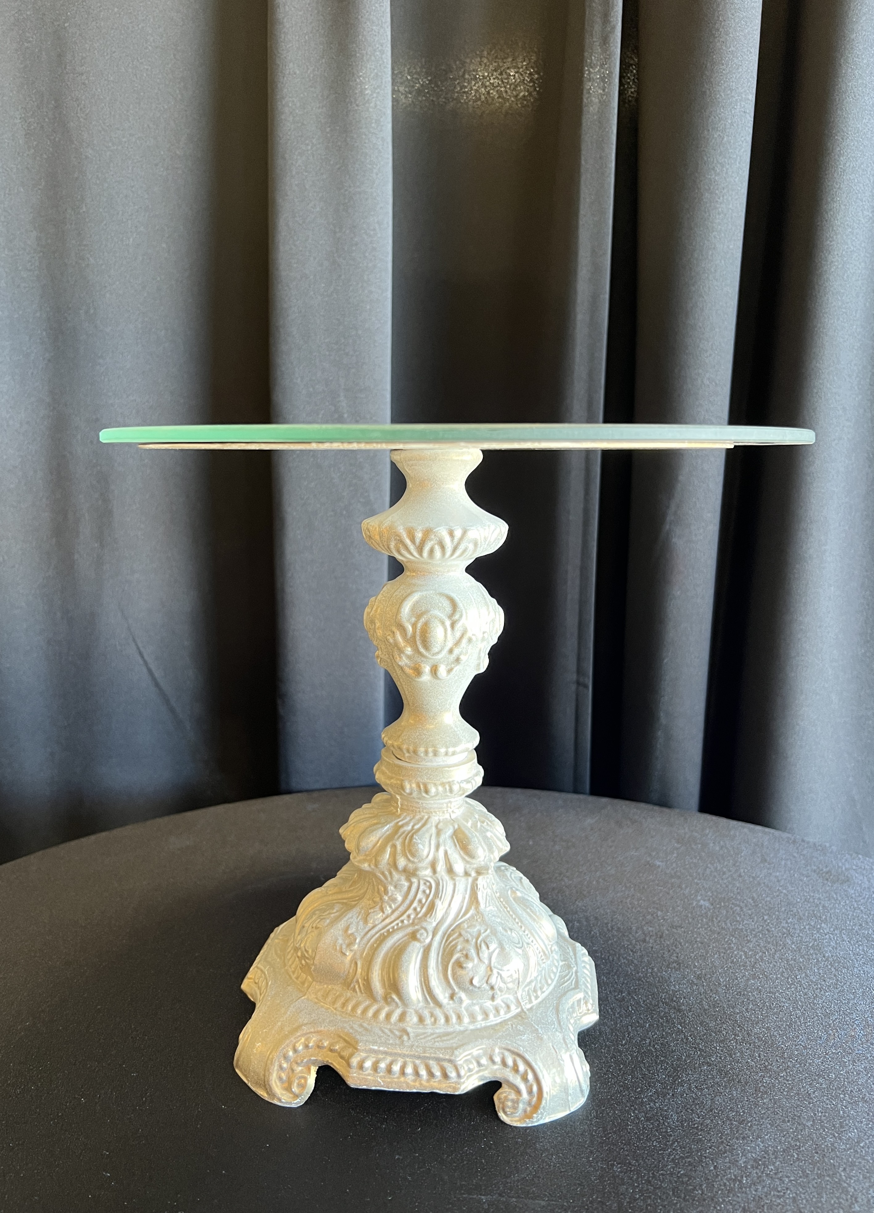 Tall ~ approx. 17″ tall Medium ~ approx. 11″ tall Small ~ approx. 5.5″ tall Mirror plates on top are 12″ across